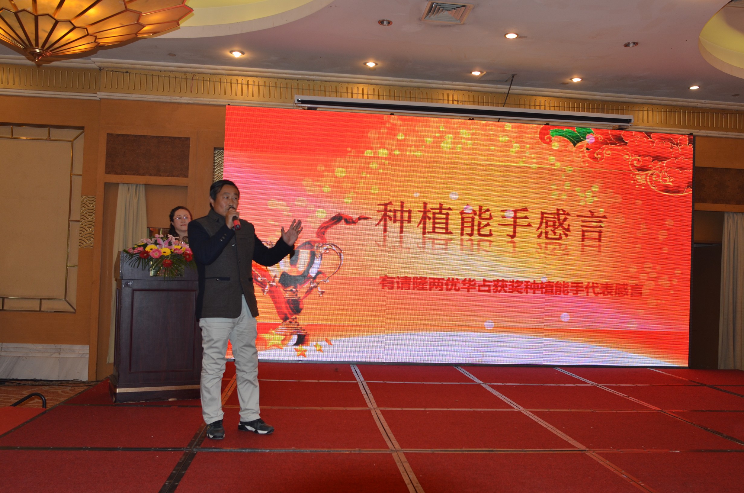12月21日,隆兩優(yōu)華占全國(guó)高產(chǎn)挑戰(zhàn)賽規(guī)模盛大的表彰大會(huì)在北京斯博瑞飯店舉行,亞華種業(yè)總經(jīng)理孫衛(wèi)華親自出席并發(fā)表講話。隆兩優(yōu)華占在2016年的全國(guó)推廣面積已達(dá)到600萬(wàn)畝,成為全國(guó)推廣最具影響力的品種,2017年目標(biāo)突破1000萬(wàn)畝,成為全國(guó)推廣面積最大的單一品種。來(lái)自全國(guó)各地的260余名農(nóng)戶分別上臺(tái)接受公司領(lǐng)導(dǎo)的隆重頒獎(jiǎng)。