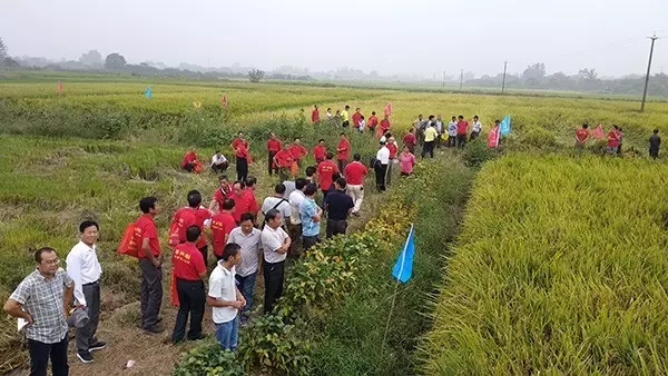 2017年9月24日上午,百分農(nóng)業(yè)應(yīng)鼎城石公橋經(jīng)銷商陳月清邀請(qǐng)前往石公橋鎮(zhèn)文家坪農(nóng)戶曹志才示范田實(shí)地測(cè)產(chǎn)實(shí)收,參會(huì)人員有常德鼎城代理商鄧總、百分湖南大區(qū)劉浩經(jīng)理、鼎城區(qū)高級(jí)農(nóng)藝師周老師、160位鼎城的零售商、種植大戶及沅江、石門慕名而來(lái)一睹財(cái)神稻高產(chǎn)風(fēng)采的代理商、大戶朋友們。