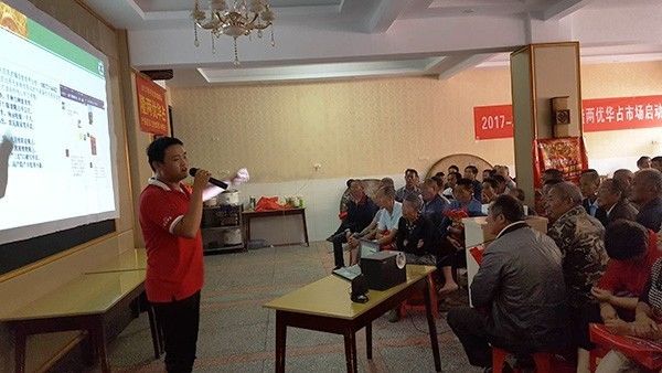 隨后,大家返回江陵灘橋鎮(zhèn)開展市場啟動會,會議開始,首先由荊州經銷商孫友軍致開場詞,緊接著由亞華湖北分公司喬炳輝給在場農戶介紹了公司及隆兩優(yōu)華占的相關信息,隨后由亞華湖北分公司陳小雙做了相關補充,并對之后的工作安排和相關政策進行了詳細講解,最后在當地零售商付老板的主持下開始訂購,本次會議預期到場100人,實際到場300人,訂購場面異?;鸨?!