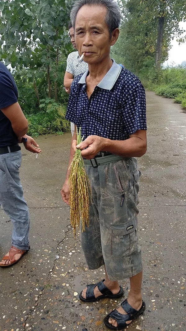 上午10點整,在代理商鄧總的帶領(lǐng)下,各鄉(xiāng)鎮(zhèn)的財神們陸續(xù)來到漢壽滄港隆兩優(yōu)1988縣級觀摩田,大家看到財神稻周邊的其他品種早已堅持不了“趴著睡著了”,唯有財神稻筆挺的像站軍姿一樣屹立在那里,形成鮮明對比。大家完全不顧還下著雨,直接脫鞋下田數(shù)實粒數(shù)、看結(jié)實率和分蘗數(shù)。紛紛拿出手機拍照、拍視頻,說一定要讓我身邊種田的朋友都知道這么好的品種,在今年高溫和暴雨連連的災(zāi)年,結(jié)實率和分蘗數(shù)還這么高,估計畝產(chǎn)至少有2000斤濕谷以上。