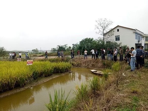 接著參會(huì)人員一起前往將要收割的田塊,大家看到田間隆兩優(yōu)華占的表現(xiàn),紛紛表示產(chǎn)量一定會(huì)很高。最后測(cè)產(chǎn)結(jié)果為畝產(chǎn)1300斤,大戶們對(duì)這個(gè)結(jié)果非常滿意,并表示再加上龍蝦,收益一定特別高。