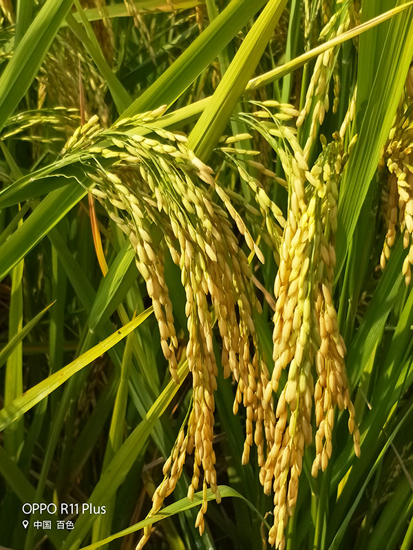 隆兩優(yōu)1988作為廣西桂南晚稻種植生育期適中,116-118天左右,該田塊已達收割條件,預計5日內(nèi)收割。在盧叔的帶領下鄉(xiāng)親們仔細觀看并發(fā)起討論,烈日下仍舊熱情高漲。代理商黎梅香拿起話筒介紹了隆兩優(yōu)1988在今年晚稻廣西各地矮縮病等病害嚴重情況下抗性過關,合理用藥后沒有造成病害,青枝活桿、穗大有效穗多、豐產(chǎn)性好、是個省心省力的好品種,配合農(nóng)技指導堪稱超級稻產(chǎn)量。
