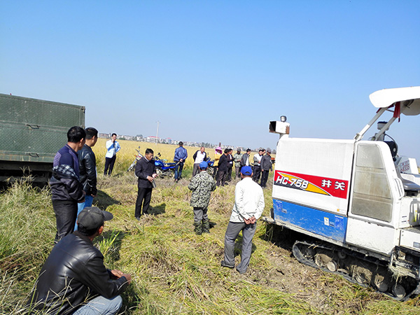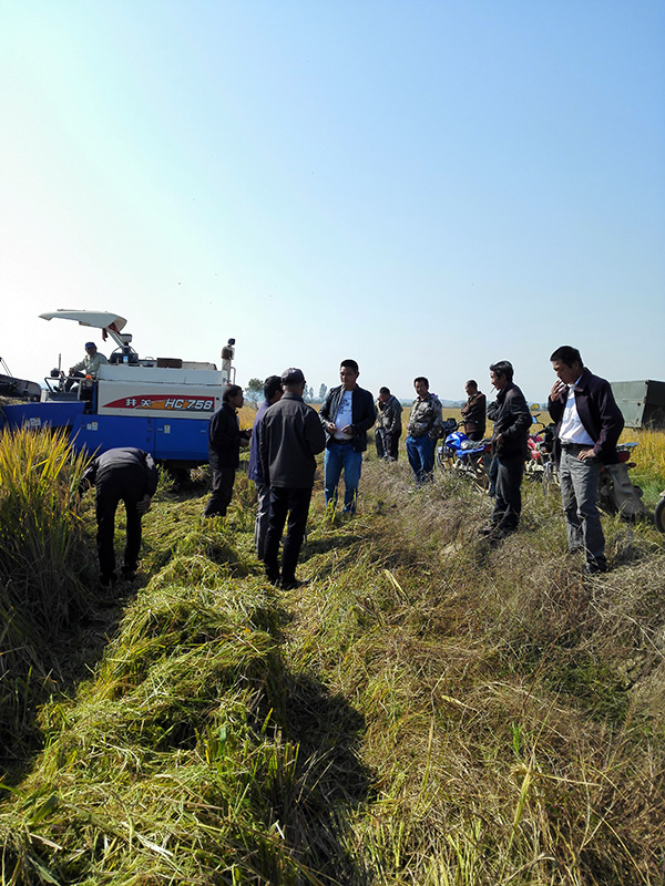 在40多位經(jīng)驗(yàn)豐富的種植大戶的見(jiàn)證下,整片田收割,種植大戶自己持GPS