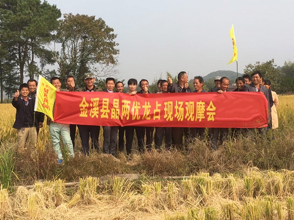 2017年11月4日,在金溪縣黃總的帶領(lǐng)下,全縣經(jīng)銷(xiāo)商一起來(lái)到金溪縣雙唐鎮(zhèn)古圩村參觀(guān)晶系明珠——晶兩優(yōu)龍占的田間表現(xiàn)。
