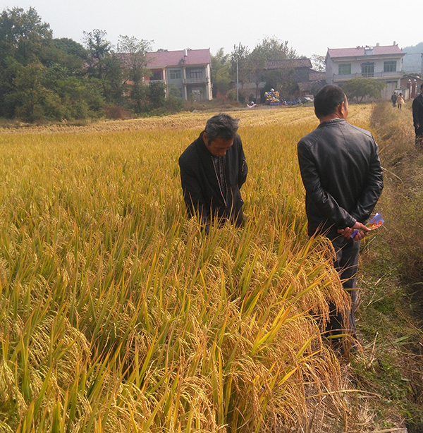 剛到田間,經(jīng)銷(xiāo)商朋友們就對(duì)晶兩優(yōu)龍占緊湊的株葉形態(tài)表示欣賞,一層層稻穗也為晶兩優(yōu)龍占的產(chǎn)量提供了堅(jiān)實(shí)的保障。為了深入了解這個(gè)品種,有些人親自到田中查看起莖稈的抗倒性、抗病性,沒(méi)有發(fā)現(xiàn)一處病斑。也有朋友表示了對(duì)結(jié)實(shí)率、米質(zhì)的關(guān)心,經(jīng)查驗(yàn),晶兩優(yōu)龍占起碼有85%以上的結(jié)實(shí)率。最后,晶兩優(yōu)龍占以?xún)?yōu)異的全面表現(xiàn)獲得了與會(huì)人員的一致好評(píng)。