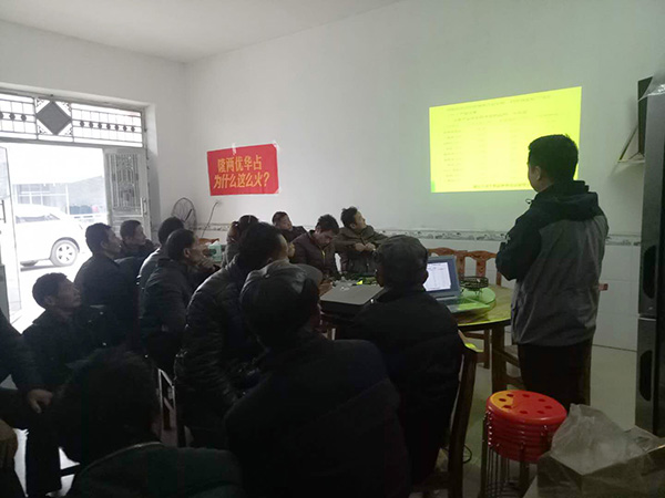 上午10點左右,會議在三陽港鎮(zhèn)農(nóng)莊會議室召開,首先由亞華事業(yè)部湘北大區(qū)經(jīng)理康杰發(fā)言,分別從品種的特性、優(yōu)勢及近幾年桃源當(dāng)?shù)芈蓛?yōu)華占的表現(xiàn)情況進(jìn)行講解。接著由桃源縣代理商黃繼桃發(fā)表講話,介紹隆兩優(yōu)華占的播種技術(shù)要點以及在桃源地區(qū)的表現(xiàn)情況,強(qiáng)調(diào)農(nóng)戶在明年可以調(diào)整播期,提高米質(zhì)。再接著由農(nóng)戶發(fā)言,表達(dá)自己對隆兩優(yōu)華占的看法,并從自己是如何種植隆兩優(yōu)華占方面進(jìn)行討論,紛紛贊揚(yáng)隆兩優(yōu)華占的高產(chǎn)和穩(wěn)定。
