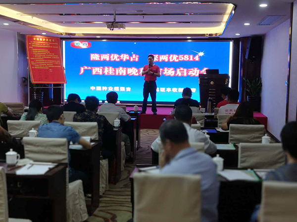 會(huì)議由廣西分公司歐家科主持,首先由廣西分公司蔡經(jīng)理介紹品種銷售情況、市場情況及今年晚稻的銷售政策。蔡總圍繞農(nóng)業(yè)供給側(cè)結(jié)構(gòu)性改革這根主線,以市場需求為導(dǎo)向,在桂南晚稻市場銷售中如何打贏深兩優(yōu)5814和隆兩優(yōu)華占攻堅(jiān)戰(zhàn)作了講解。