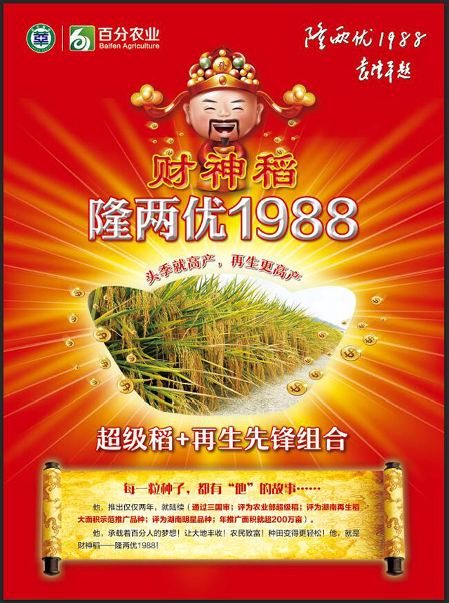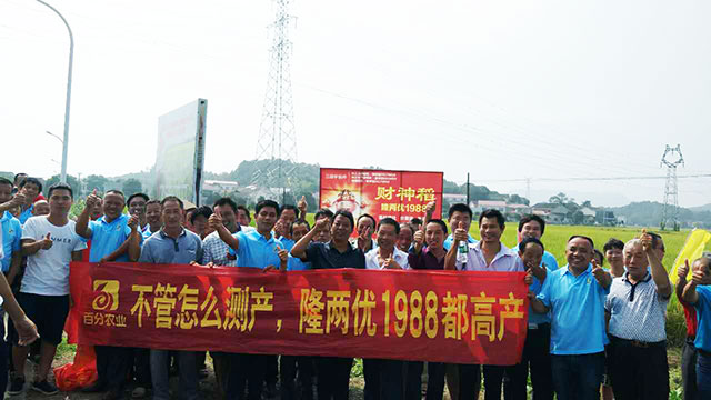 每個環(huán)節(jié)扎實完成,“工作做到位了,才對得起自己,對得起相信我們的農(nóng)戶和寄予厚望的公司”老朱說。隆兩優(yōu)1988正是這樣從老朱手里一步一步成長起來的。還記得上次4月底去拜訪他的時候,他因為上車下車搬種子把腰給扭了,不僅不抱怨,還很自娛自樂的說:“現(xiàn)在一心只想著賣種子,都不敢想過些天種子賣完了沒事做了,干嘛去呢?那一定會很空虛很無聊吧,賣種子才能讓我充實啊。”說完拍了拍肩上的灰,揉了揉扭傷的腰,一陣哈哈大笑起來。時光荏苒,雖年過半百,老朱臉上還是一點也看不出衰老的痕跡,我想這應(yīng)該就是笑容的力量吧!