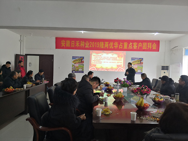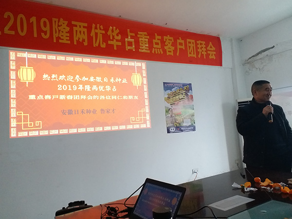 10點(diǎn)30分,由日禾種業(yè)總經(jīng)理魯家才主持,隆兩優(yōu)華占銷(xiāo)售團(tuán)隊(duì)向所有在座嘉賓拜年。祝愿我們珠聯(lián)璧合、豬年大吉、諸事順利,經(jīng)過(guò)一年的奮斗隆兩優(yōu)華占的合作伙伴們可以珠光寶氣!