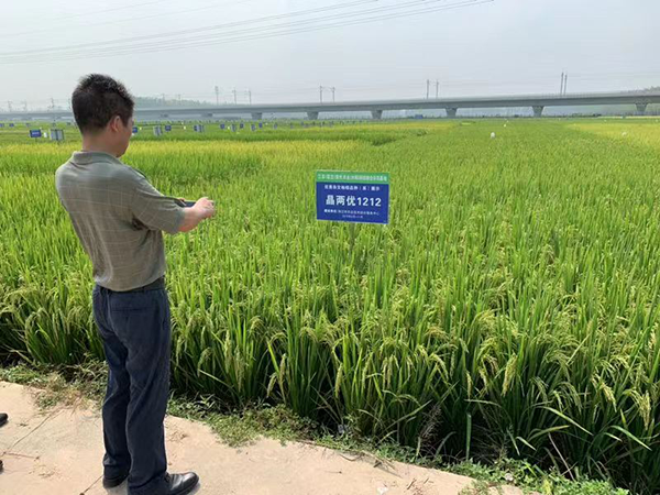 9月7日到達了江蘇宿遷,與宿遷市站張站長一同查看了晶兩優(yōu)1212,晶兩優(yōu)1468在宿遷農(nóng)委展示田的田間表現(xiàn),張站長指出:“2018年江蘇好大米的評選活動中晶兩優(yōu)1468獲得了特等獎,晶兩優(yōu)1212獲得了金獎,目前看來這兩個品種不僅是米質(zhì)好而且生育期也非常適合我們宿遷種植!”