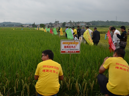 上午9 時(shí)許,寧鄉(xiāng)大成橋鎮(zhèn)突然喜炮轟鳴,人頭涌動(dòng),田間彩旗飄揚(yáng),好不熱鬧。原來(lái)是湖南亞華種子有限公司在寧鄉(xiāng)縣大成橋鎮(zhèn)召開(kāi)中國(guó)種業(yè)最強(qiáng)音—隆兩優(yōu)華占現(xiàn)場(chǎng)觀摩會(huì)。只見(jiàn)那隆兩優(yōu)華占雄赳赳氣昂昴,站立筆直,像神采奕奕的士兵在等待檢閱。它們株型緊湊、籽黃葉青、莖稈粗壯、分蘗力強(qiáng)、有效穗多、著粒密度高,不愧于中國(guó)龍稻這個(gè)響亮的稱呼。 來(lái)自湖南省各地的優(yōu)秀合作伙伴們興致勃勃地圍著觀摩點(diǎn)四處觀看,有的到田里扯根穗子默默的數(shù)著,有的撥開(kāi)禾稻看看分蘗力,有的在自己認(rèn)為好看的稻穗處合影,有的在竊竊私語(yǔ),討論著自己種植的隆兩優(yōu)華占與現(xiàn)場(chǎng)的誰(shuí)更好,有的則在湖南亞華種子有限公司講解員面前認(rèn)真聽(tīng)解,大家忙的不亦樂(lè)乎。