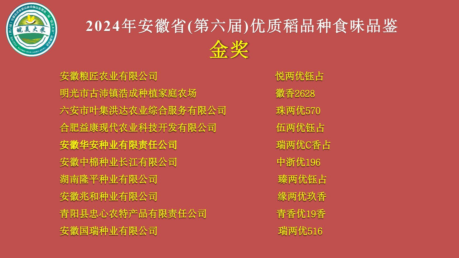 1月11日,安徽?。ǖ诹鶎茫﹥?yōu)質(zhì)稻品種食味品鑒暨第二屆“皖美大米”品牌評(píng)選結(jié)果發(fā)布會(huì)上,湖南亞華種業(yè)有限公司雜交水稻品種“悅兩優(yōu)鈺占”、“伍兩優(yōu)鈺占”在52家單位申報(bào)的65個(gè)參評(píng)品種中脫穎而出,分別榮獲優(yōu)質(zhì)稻品種食味品鑒金獎(jiǎng)第一名和第四名的好成績(jī)。