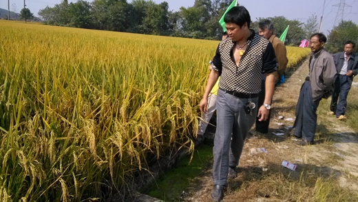 看著這田邊上的一簾又一簾稻穗,參觀人員情不自禁的用手撫摸細(xì)數(shù)。隆兩優(yōu)華占不僅僅穗長(zhǎng),而且著粒密度非常密,有農(nóng)戶說(shuō)這穗子長(zhǎng)的真是漂亮,四百多粒的穗子一抓一大把,真不敢相信這是二晚的稻田。這位農(nóng)戶還特意跑到對(duì)面采摘了一些*優(yōu)華占的穗子拿過(guò)來(lái)比較給大家看,他說(shuō)長(zhǎng)度相差半根手指那么長(zhǎng)。拿到手上掂下就能知道哪個(gè)是隆兩優(yōu)華占哪個(gè)是*優(yōu)華占??梢?jiàn),我們隆兩優(yōu)華占已經(jīng)徹底打動(dòng)了大家的心。除此之外,隆兩優(yōu)華占莖稈粗壯,水稻分蘗可達(dá)三十多根。有些人數(shù)的比較仔細(xì),都跑到田塊中間去數(shù)了我們問(wèn)他怎么樣,他說(shuō):“這個(gè)品種真沒(méi)的說(shuō),不僅外面分蘗好,里面的都能分蘗到二十多根,這產(chǎn)量肯定不錯(cuò)!”