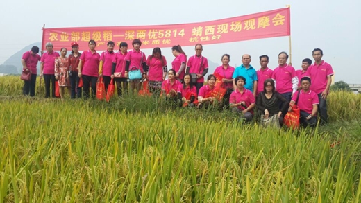 2014年10月14日,深兩優(yōu)5814靖西縣零售商觀摩會在靖西縣順利召開。此次深兩優(yōu)5814觀摩會靖西縣經(jīng)銷商張軍共組織核心鄉(xiāng)鎮(zhèn)零售商22人和當?shù)卮迕窆?0余人一同觀看深兩優(yōu)5814的田間表現(xiàn)。