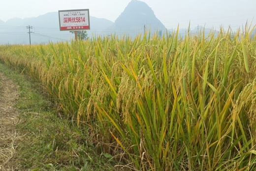 目前靖西中稻正值成熟期,此次觀摩會田間會場面積約為30畝,在離縣城較近的新靖鎮(zhèn)亮表村舉行。這個村去年只有三戶農(nóng)戶初次種植深兩優(yōu)5814,今年這里種植的深兩優(yōu)5814面積已經(jīng)達到50畝以上了。