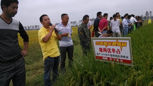 田間觀摩之后,我們開始了室內(nèi)會議。會議有區(qū)域經(jīng)理馬建國和當?shù)剞r(nóng)技站老站長對隆兩優(yōu)華占做了一個詳細的介紹。老站長說到:“隆兩優(yōu)華占最令人稱贊的是它的優(yōu)質(zhì)高產(chǎn)的穩(wěn)定性,而且這個品種是不會倒的,大水浸三次都不會倒。在這樣的田塊里,一般的品種很難高產(chǎn),但隆兩優(yōu)華占比其他品種能多割兩三百斤是沒問題的,可見隆兩優(yōu)華占的抗逆性是很不錯的。”隆兩優(yōu)華占的優(yōu)良田間表現(xiàn),以及在老站長的肯定渲染下,讓在場的所有人都看到了隆兩優(yōu)華占的優(yōu)良品質(zhì)。