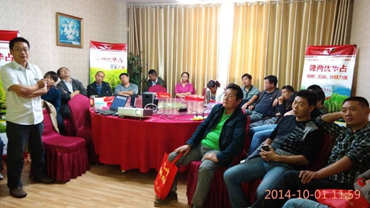 在代理商楊軍的組織下,中國龍稻—隆兩優(yōu)華占零售商觀摩會(huì)勝利召開。此次有二十多位零售商參加會(huì)議。上午11點(diǎn),室內(nèi)會(huì)議開始。湖南亞華安徽負(fù)責(zé)人武俊海先生給大家詳細(xì)講解了隆兩優(yōu)華占這個(gè)品種的特征特性,就抗病性,抗倒和穩(wěn)產(chǎn)性方面進(jìn)行分析,使各位零售商深度認(rèn)識(shí)隆兩優(yōu)華占。