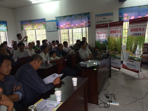回到會(huì)議室,亞華種子有限公司張來(lái)友先生,就公司的情況,科研實(shí)力、隆兩優(yōu)華占的親本來(lái)源、特征特性、今年在全國(guó)各個(gè)省,特別是安徽省各個(gè)縣市的表現(xiàn)等情況,向各位大戶和零售商一一做了介紹。
