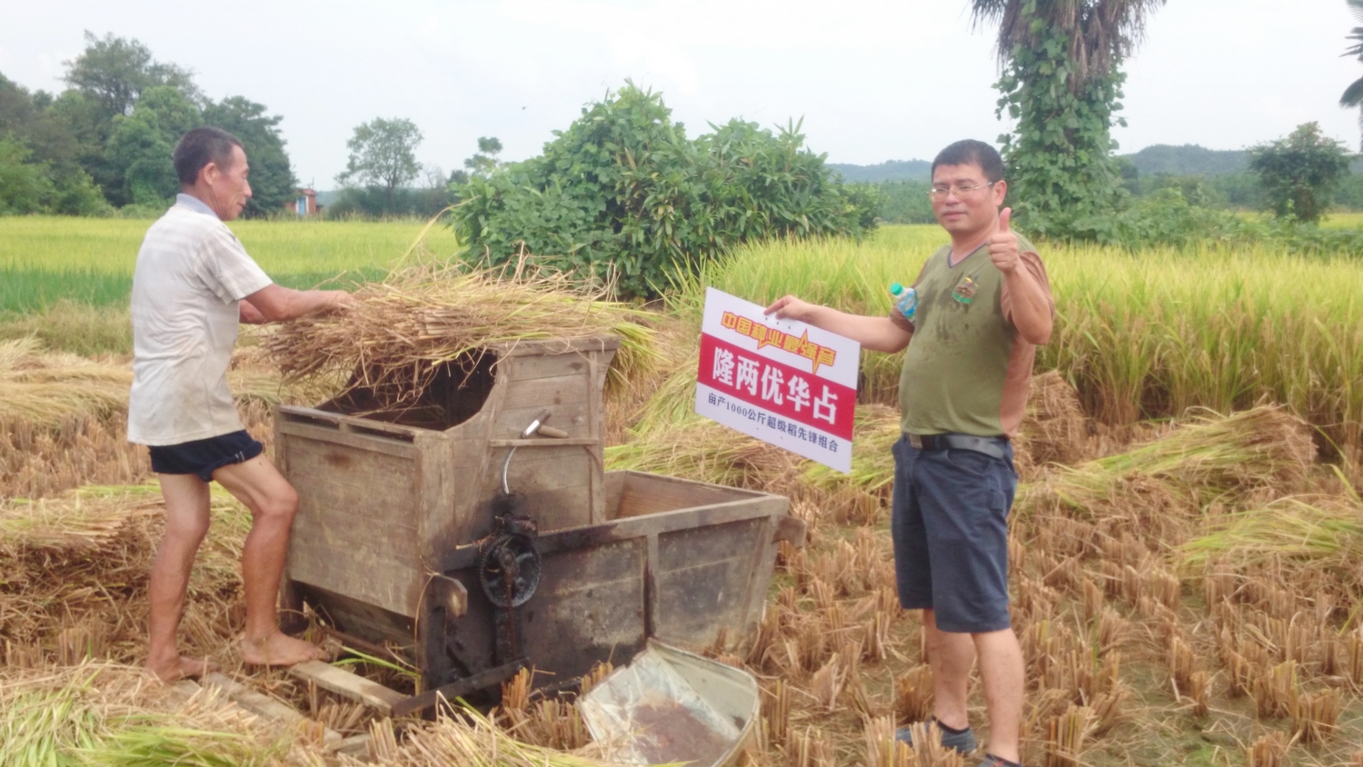 在現(xiàn)場(chǎng)附近,恰逢大崗鎮(zhèn)泥巴崗村農(nóng)戶黃金根(18379509438)在收割自己種的隆兩優(yōu)華占早稻田,當(dāng)場(chǎng)收割0.7畝,收谷16袋,實(shí)割畝產(chǎn)1620斤,看著老表臉上洋溢著豐收的笑容,我們也十分高興,隆兩優(yōu)華占是實(shí)實(shí)在在能給農(nóng)民帶來(lái)豐收的好品種。
