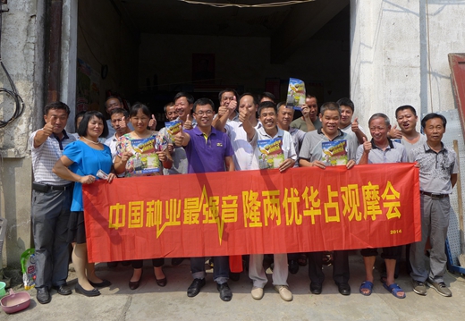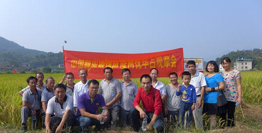 2014年9月27日,20余名鄉(xiāng)鎮(zhèn)經(jīng)銷商齊聚江西銅鼓大塅鎮(zhèn)古橋村,共同參觀由湖南亞華種子有限公司推出的又一強(qiáng)勢(shì)品種——隆兩優(yōu)華占。雖然烈日當(dāng)頭,但也阻擋不了大家的熱情,對(duì)于好的品種他們總是不吝惜贊美之詞。