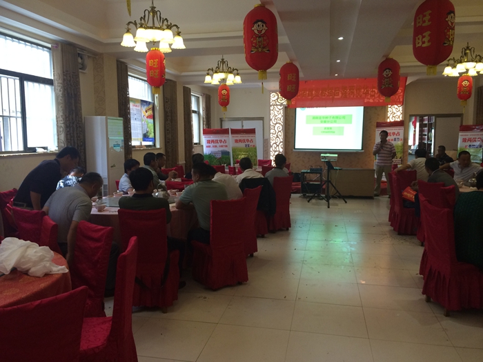 來到會議室,安徽分公司總經(jīng)理武俊海先生,首先向大家介紹了這個(gè)品種的來源,H638SX華占,H638S是楊遠(yuǎn)柱老師的選育的一個(gè)強(qiáng)優(yōu)勢的親本,這個(gè)親本的問世,將是種業(yè)界的一次革命,隆兩優(yōu)華占將是一個(gè)劃時(shí)代的品種,H638S也將由隆平高科獨(dú)家開發(fā)。并且,武總對隆兩優(yōu)華占的特征特性及今年在安徽、福建、湖南、湖北、江西的表現(xiàn)情況一一向來會零售商做了詳細(xì)的介紹。