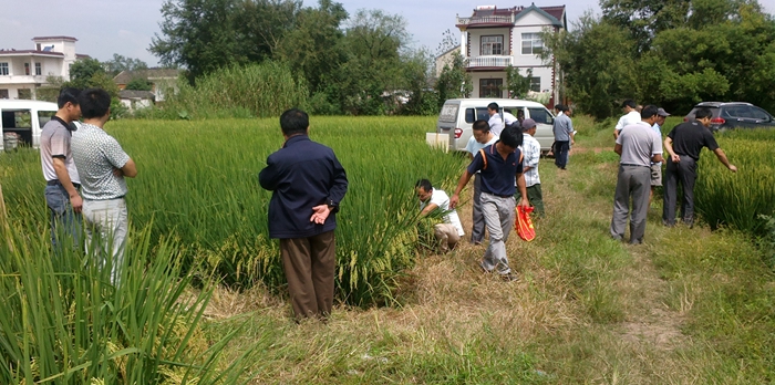 2014年9月22日上午,安徽無(wú)為縣客戶李軍組織當(dāng)?shù)睾诵目蛻粲^摩了由其布點(diǎn)示范的隆兩優(yōu)華占大田現(xiàn)場(chǎng)。參觀的無(wú)為縣終端客戶對(duì)中國(guó)種業(yè)最強(qiáng)音-隆兩優(yōu)華占品種反響熱烈,通過(guò)觀摩現(xiàn)場(chǎng)表現(xiàn),大家一致認(rèn)可隆兩優(yōu)華占品種是高產(chǎn)、穩(wěn)產(chǎn)、高抗的品種。