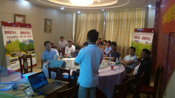 田間觀摩之后舉行了室內(nèi)會(huì)議,通過(guò)從品種選育、特征特性、栽培管理、運(yùn)作模式等各方面講解,與會(huì)人員對(duì)隆兩優(yōu)華占有了更系統(tǒng)全面的了解和認(rèn)知。