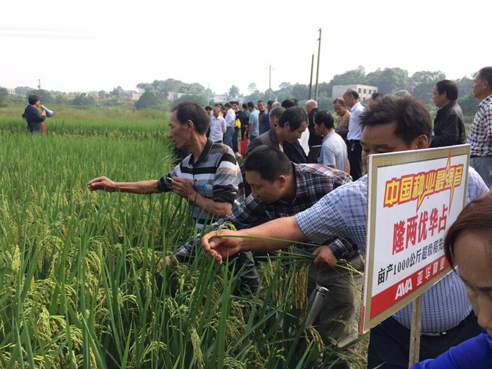 上午9點半,雷鋒鎮(zhèn)坪山村的隆兩優(yōu)華占田梗邊人群熙熙攘攘,這么多人在什么呢?此時從遠處傳來喇叭聲,“后面的人跟上,我們邊走邊看邊介紹隆兩優(yōu)華占的特征特性及栽培技術(shù)”,原來是望城區(qū)代理商譚虎林帶著零售商與種田大戶來考察隆兩優(yōu)華占了。在田邊大家都在仔細觀察品種,后期落色好、劍葉清秀、分蘗力強、結(jié)實率高、高抗稻瘟病等超強特性得到了到場所有人的一致贊賞與肯定。