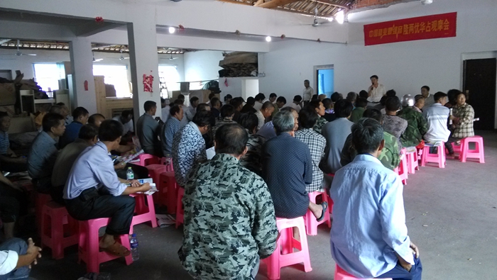 觀看結(jié)束之后,一行人舉行了室內(nèi)會議。會議中,代理商徐國經(jīng)把隆兩優(yōu)華占的分蘗力強(qiáng),抗倒性好,抗病能力強(qiáng),米質(zhì)好,著粒密度密,結(jié)實(shí)率高等優(yōu)質(zhì)特性表現(xiàn)一一講明。徐站長講的激情澎湃,農(nóng)戶們聽的也是有滋有味。作為農(nóng)技站站長,徐站長對水稻品種的鑒定有著豐富的經(jīng)驗(yàn),會議中他說:“隆兩優(yōu)華占的表現(xiàn)我是一步步實(shí)驗(yàn)的觀看出來的,是經(jīng)過科學(xué)實(shí)驗(yàn)對比出來的,要不然我不會說它的好。”種過隆兩優(yōu)華占的農(nóng)戶,竟自發(fā)要求在現(xiàn)場發(fā)言講述它的表現(xiàn),鼓勵(lì)在場的各位農(nóng)戶明年一起都種隆兩優(yōu)華占。