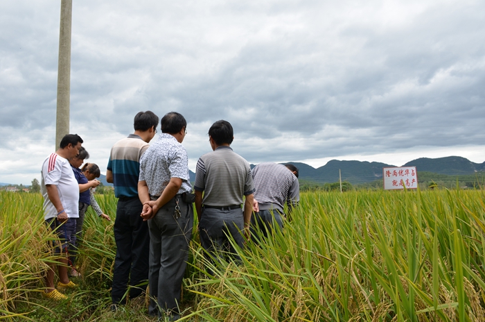 湖北遠安縣是稻瘟病的高發(fā)區(qū),為了展示中國龍稻-隆兩優(yōu)華占的超高抗特性,亞華種業(yè)特地選擇在此縣進行了隆兩優(yōu)華占示范工作。2014年9月19日,亞華種業(yè)代理商汪雄組織了來自各鄉(xiāng)鎮(zhèn)的12位重點零售商,觀摩了該示范田。