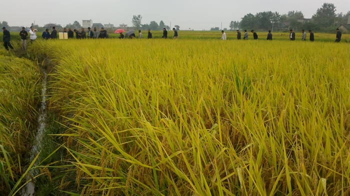 室內(nèi)會議之后,參加此次會議一行40多人,冒著濛濛細雨來到了隆兩優(yōu)華占觀摩點現(xiàn)場,現(xiàn)場觀摩了該品種。大家仔細觀察品種,察看植株形態(tài)、病蟲害發(fā)生情況、結(jié)實率、抗倒性、分裂性等情況,大家紛紛一致認為,從這些方面來看,隆兩優(yōu)華占綜合表現(xiàn)突出,不愧為中國種業(yè)最強音的稱號!