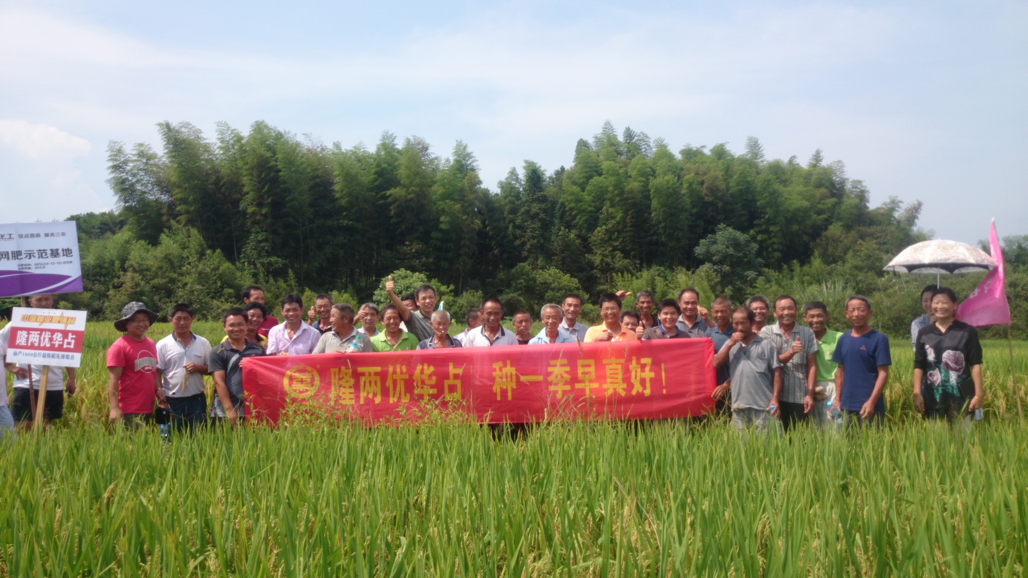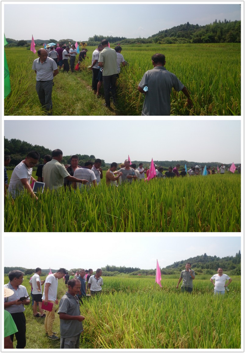 觀摩會現(xiàn)場有白陂鄉(xiāng)、巴山鎮(zhèn)、河上鎮(zhèn)、桃源鄉(xiāng)、許坊鄉(xiāng)等鄉(xiāng)鎮(zhèn)的零售商和種田大戶共60余人,該田塊由石莊鄉(xiāng)詹家村農(nóng)戶洪勁松(13979443489)種植,由于田塊表現(xiàn)突出,六國肥料公司也選取該田塊為觀摩會場。一到現(xiàn)場,不少種田大戶就下到田里,數(shù)分蘗,看稻穗數(shù)粒數(shù),場面十分火爆,盡管烈日高照,汗水浸濕了衣服,很多大戶還是耐心、細心的聽取亞華種業(yè)江西分公司李克寬經(jīng)理對隆兩優(yōu)華占的介紹,這表現(xiàn)出農(nóng)民是多么期待獲得隆兩優(yōu)華占這樣一個好品種。這期間,一位大戶說道:“你們都是王婆賣瓜,自賣自夸,種這么好的田到底是你們的種子好還是他們的肥料好?”惹的大家都笑起來。李經(jīng)理笑著回應(yīng)到:“現(xiàn)在都流行強強聯(lián)合,俗話都說,好馬配好鞍,只有品種好了,再以好肥料輔佐,那就有更高的收益,這才是你們農(nóng)戶選擇我們的初衷嘛。”