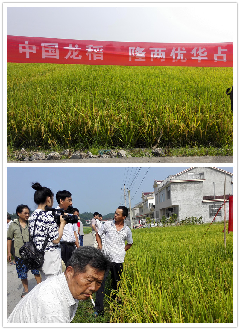 2015年8月22日,在美麗的桃花源鎮(zhèn)召開(kāi)中國(guó)龍稻——隆兩優(yōu)華占現(xiàn)場(chǎng)觀摩會(huì)及定購(gòu)會(huì),各鄉(xiāng)鎮(zhèn)零售商及大戶代表共60多人參加。田間觀摩桃花源鎮(zhèn)種植大戶謝紅輝(井崗村 13786670455)連片種植的20畝隆兩優(yōu)華占。