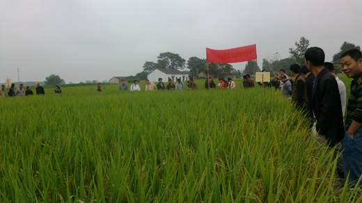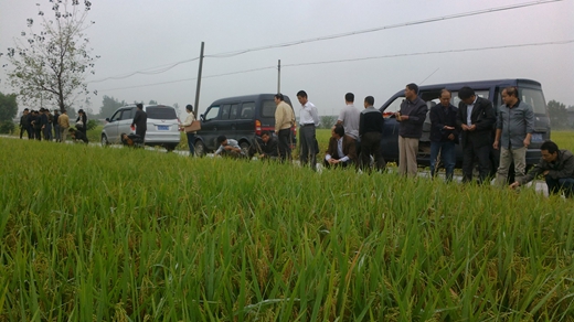 2014年9月13日,在亞華種業(yè)肥東縣經(jīng)銷商的帶領(lǐng)下,來自肥東縣各水稻區(qū)鄉(xiāng)鎮(zhèn)的零售商50余人。分別觀摩了位于肥東縣撮鎮(zhèn)的廣兩優(yōu)矮93和梁園鎮(zhèn)的隆兩優(yōu)華占的現(xiàn)場(chǎng)。