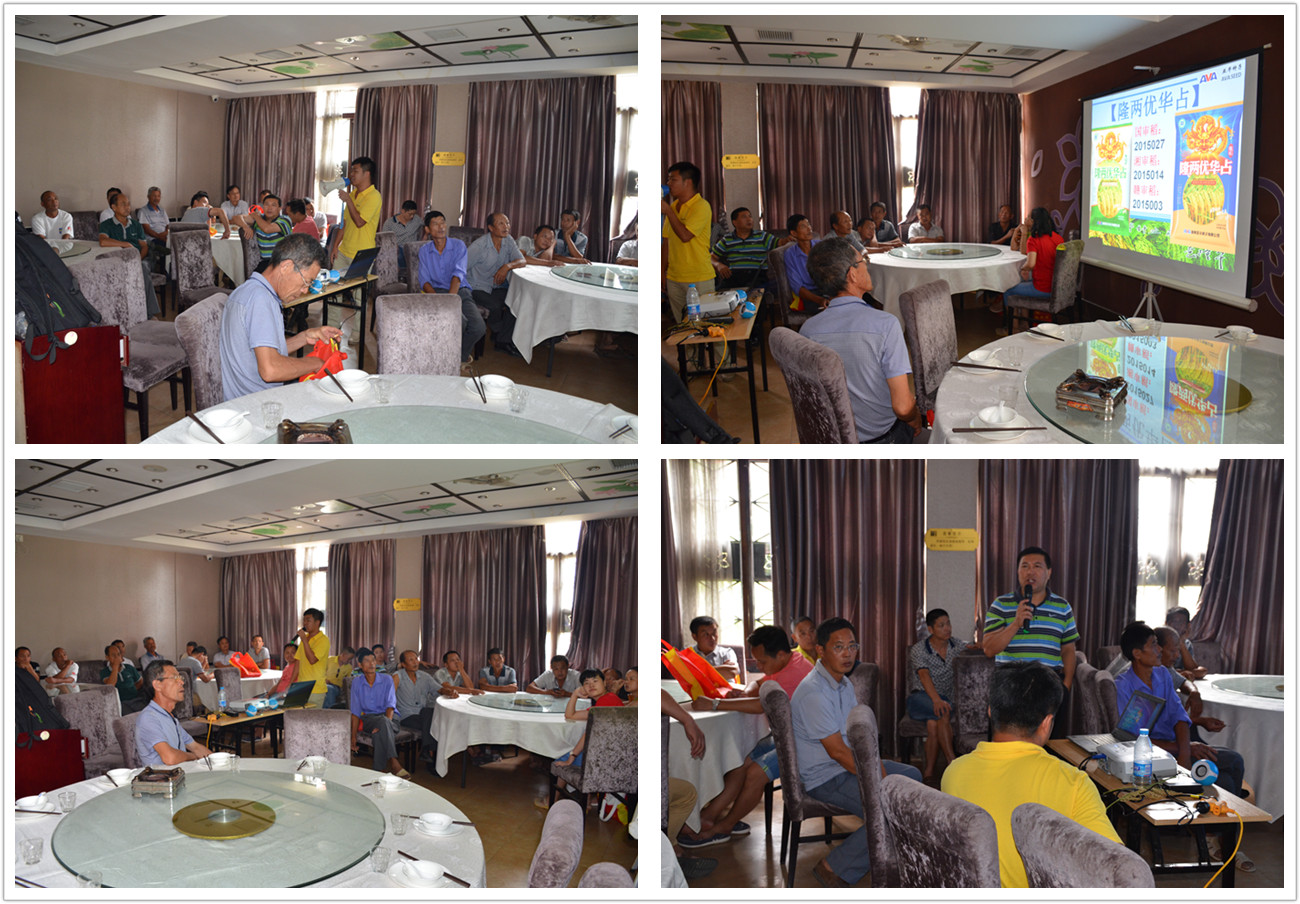 在隨后的室內(nèi)會議上,湖南亞華種子有限公司湖北分公司黃開文經(jīng)理就產(chǎn)品的審定情況、特征特性、奪高產(chǎn)的判斷要素、全國以及湖北當(dāng)?shù)亟?0個縣的種植表現(xiàn)情況、不預(yù)定不供貨原則、市場維護獎懲、全國預(yù)定火爆場面、后續(xù)品種等進行了分析和講解。