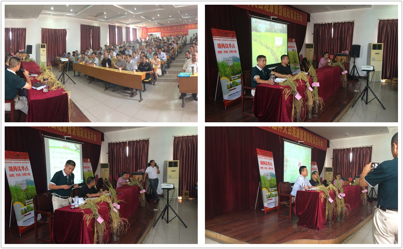 現(xiàn)場觀摩后的室內(nèi)會議上,開展了零售商預(yù)定活動,當(dāng)場收取定金50萬元。湖南亞華種子有限公司安徽分公司總經(jīng)理武俊海給參會人員介紹了公司及隆兩優(yōu)華占這兩年的表現(xiàn)情況,圖文并茂的講述了隆兩優(yōu)華占高產(chǎn)、耐肥抗倒、耐高低溫、稻瘟病抗性好、米質(zhì)優(yōu)、適合各種栽培模式等優(yōu)良特性!