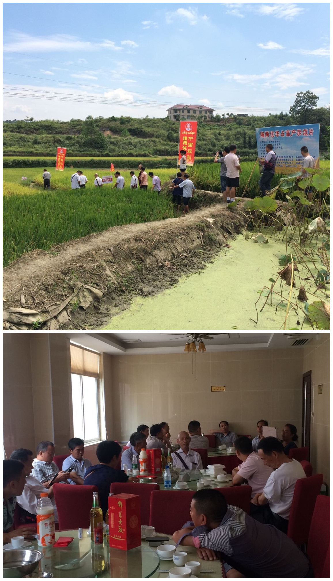觀摩后大家一起前往新化縣和平飯店開室內(nèi)會(huì)議,會(huì)上代理商瑞豐種業(yè)黃明球簡(jiǎn)單介紹了隆兩優(yōu)華占的情況:因?yàn)樗疚敛】剐詮?qiáng)、生育期適中,是一個(gè)可以在新化大力推廣的好品種。同時(shí)公司為回饋各位農(nóng)戶朋友現(xiàn)開展了年前定種送禮品活動(dòng),禮品豐富,人人都有機(jī)會(huì)!