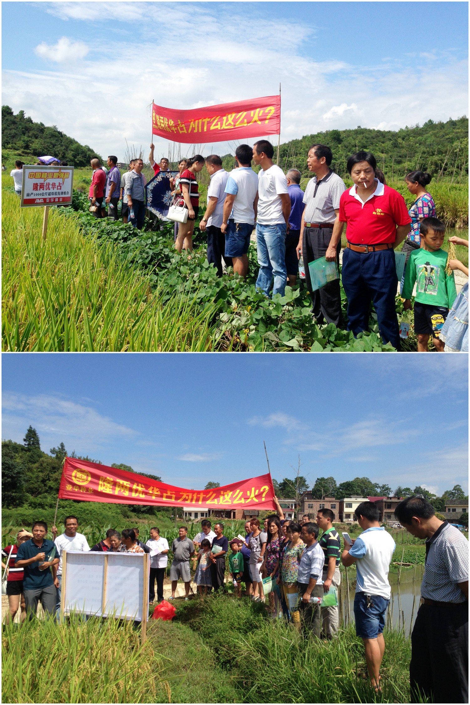 次日,為滿足大家到現(xiàn)場觀摩的要求,曹總組織近70人的觀摩團直接來到祁陽縣茅竹鎮(zhèn)灘平村,現(xiàn)場觀摩大戶柏斌連片撒播的100多畝隆兩優(yōu)華占大田表現(xiàn)。大家看到大田里密密厚厚的稻穗,都十分滿意!曹總向大家介紹當時測產(chǎn)的情況,具體情況是測產(chǎn)由種植戶、觀摩戶、記者、亞華種業(yè)代表等現(xiàn)場隨機抽取隆兩優(yōu)華占大田中間一個平方米面積,現(xiàn)場收割現(xiàn)場脫粒,由當?shù)剞r(nóng)戶過秤,得到每平方米濕谷3.2斤,按照85折計算畝產(chǎn)干谷1814斤,經(jīng)計算有高達90%的結(jié)實率。通過觀摩和測產(chǎn)證明隆兩優(yōu)華占的超高產(chǎn)潛力巨大,種植戶通過合理的肥水管理,機插、直播等簡便化栽培模式一樣能獲高產(chǎn),加上品種的抗病性強,穩(wěn)產(chǎn)性好的特點,大戶選擇隆兩優(yōu)華占是一種潮流!
