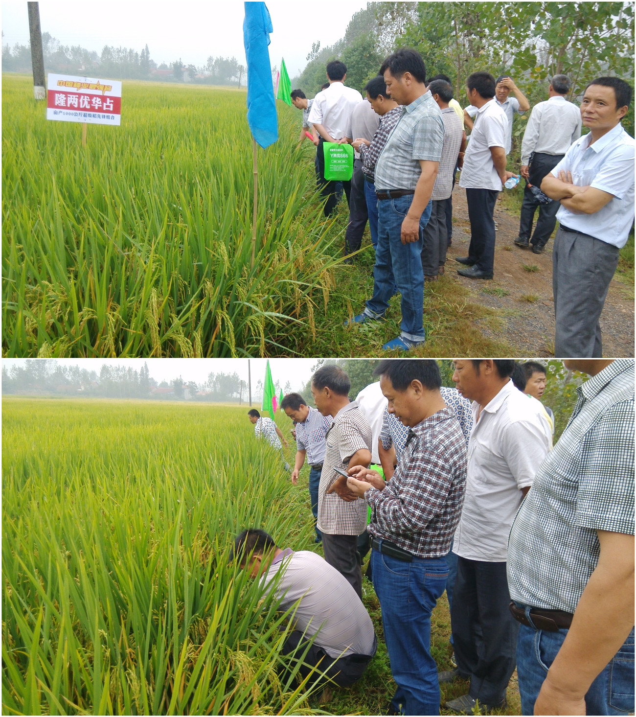 看著稻田中沉甸甸的稻穗,大家紛紛深入到田間仔細觀察隆兩優(yōu)華占的表現(xiàn)。大家邊看邊猜測產(chǎn)量,有的說1400斤,有的說1500,最終得出的結(jié)論是比其他的品種產(chǎn)量要高出100到200斤左右。為了讓各種田大戶更深入的了解我們的品種,京山的代理商曹愛彬(張群合作伙伴)分別從抗病、抗倒、分蘗和產(chǎn)量等方面在田間對我們的品種進行了詳細講解。