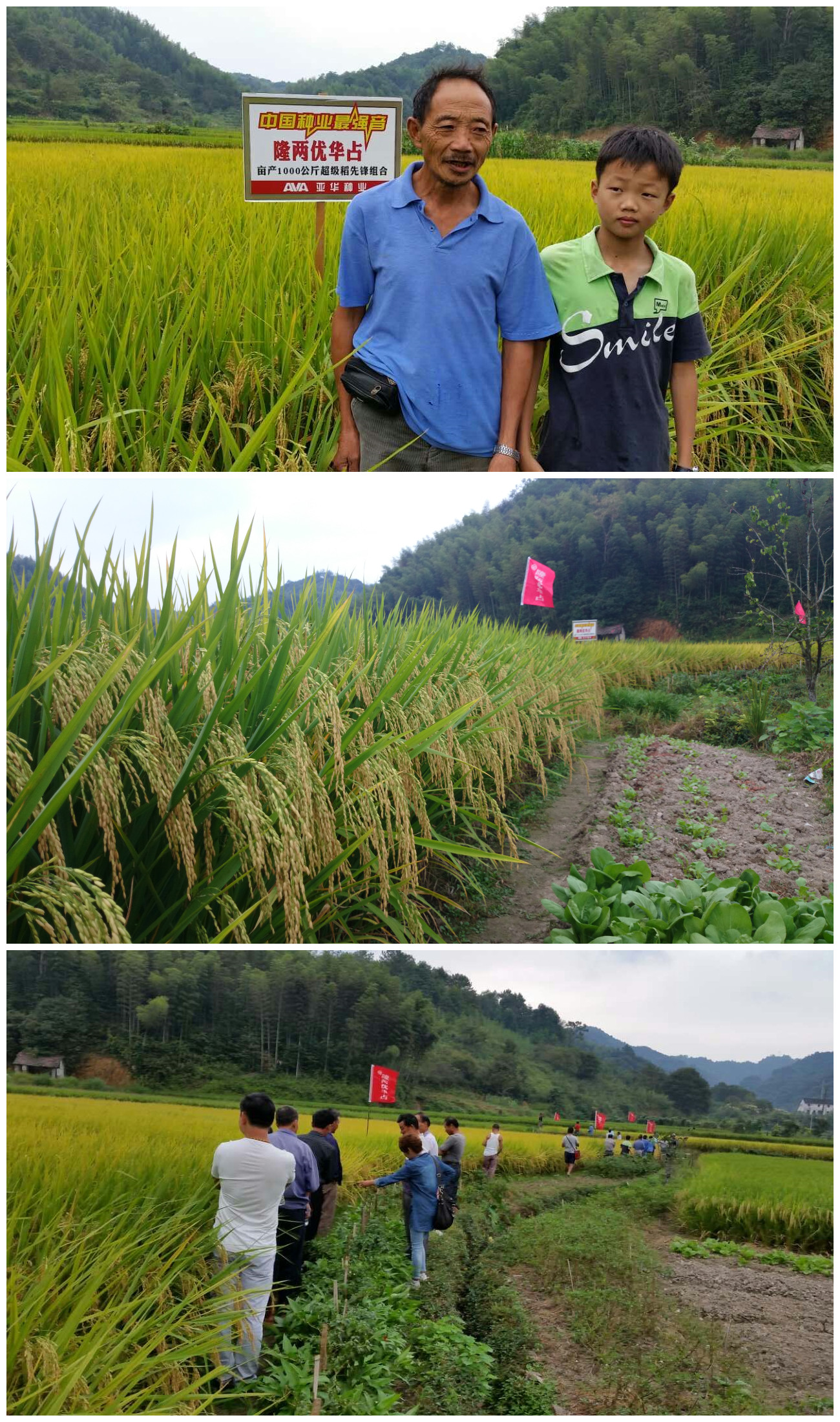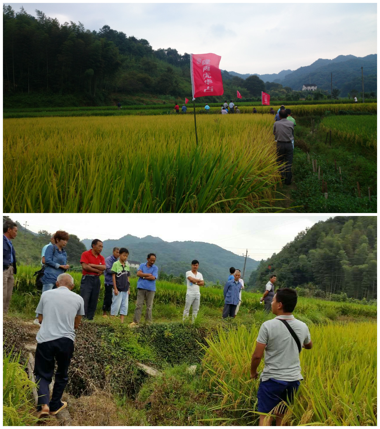 2015年9月12日,在婺源賦春鎮(zhèn)舉行了一場十分熱鬧的隆兩優(yōu)華占農民觀摩預訂會。在零售商方老板的組織下,賦春鎮(zhèn)各村的70余名農戶來到位于盤坑村的觀摩田。