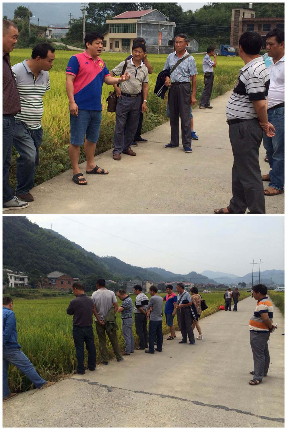 2015年9月15日,安化縣代理商韓總召集了各鄉(xiāng)鎮(zhèn)農(nóng)技站站長、鄉(xiāng)鎮(zhèn)代理商到仙溪鎮(zhèn)參加隆兩優(yōu)華占現(xiàn)場觀摩會。