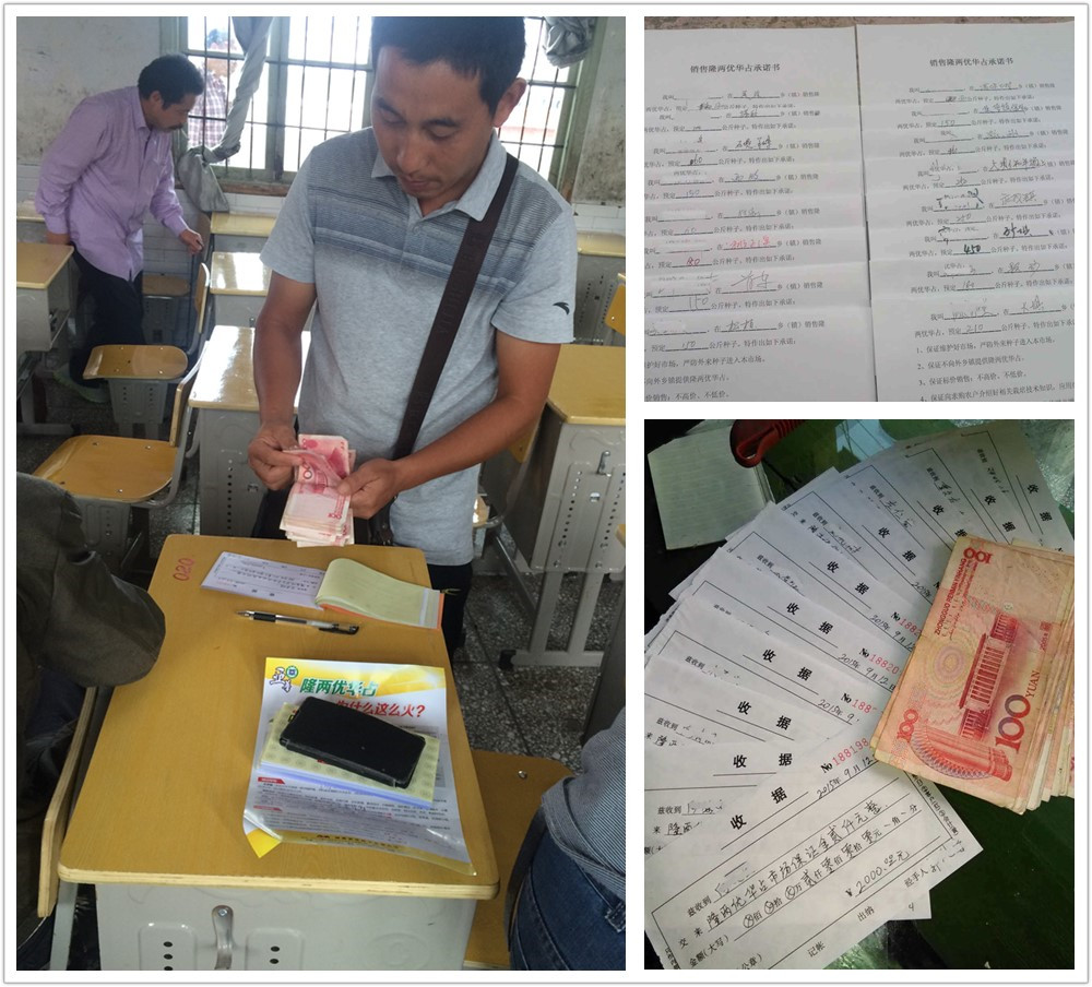 現(xiàn)場觀摩后進行了室內(nèi)會議,會上由湖南亞華種子有限公司肖雙來經(jīng)理給大家做了關(guān)于隆兩優(yōu)華占的特征特性、國內(nèi)種植情況、種子供應(yīng)情況、預(yù)定銷售模式及保證金市場管理方法等的詳細講解。隨后,由姚元龍給大家做了相關(guān)銷售與政策的講解,經(jīng)銷商們對公司的銷售模式和市場管理方式表示完全贊同,大家都主動繳納了市場維護保證金,之后提交了隆兩優(yōu)華占的預(yù)定數(shù)量——現(xiàn)場預(yù)定共3200公斤,預(yù)計總預(yù)定量將達到6000公斤。