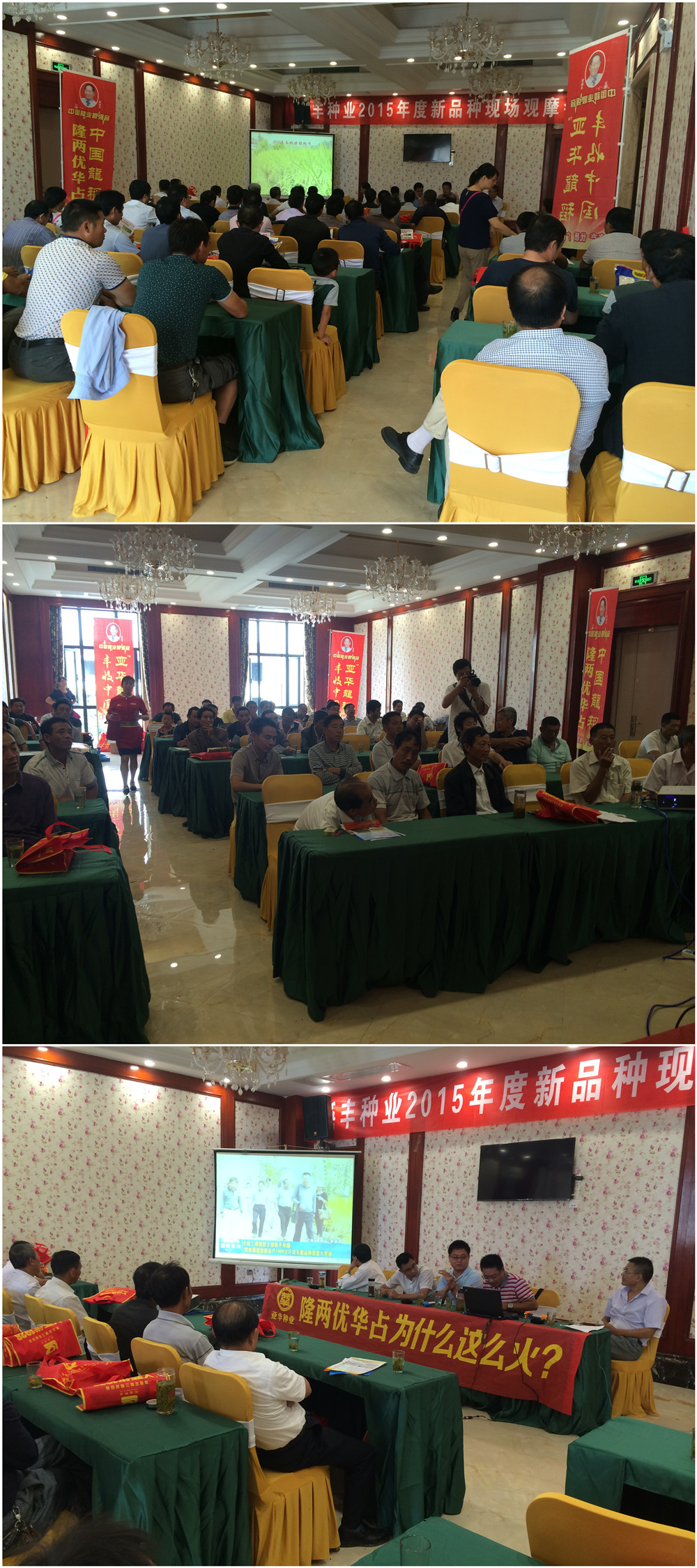 回到會議室,先由亞華種業(yè)安徽公司總經(jīng)理武俊海,向經(jīng)銷商和大戶們重點(diǎn)介紹了隆兩優(yōu)華占的特征特性,隆兩優(yōu)華占將是通過全國四大稻區(qū)審定的第一個品種,這意味著什么?意味著這是一個劃時代的廣適性的品種。之后武總還與大家一起分享了隆兩優(yōu)華占在全國各地的表現(xiàn)情況,特別介紹了安徽省各地的表現(xiàn)情況及產(chǎn)量情況,言畢,大戶紛紛表示明年一定要多種隆兩優(yōu)華占!增產(chǎn)創(chuàng)收!