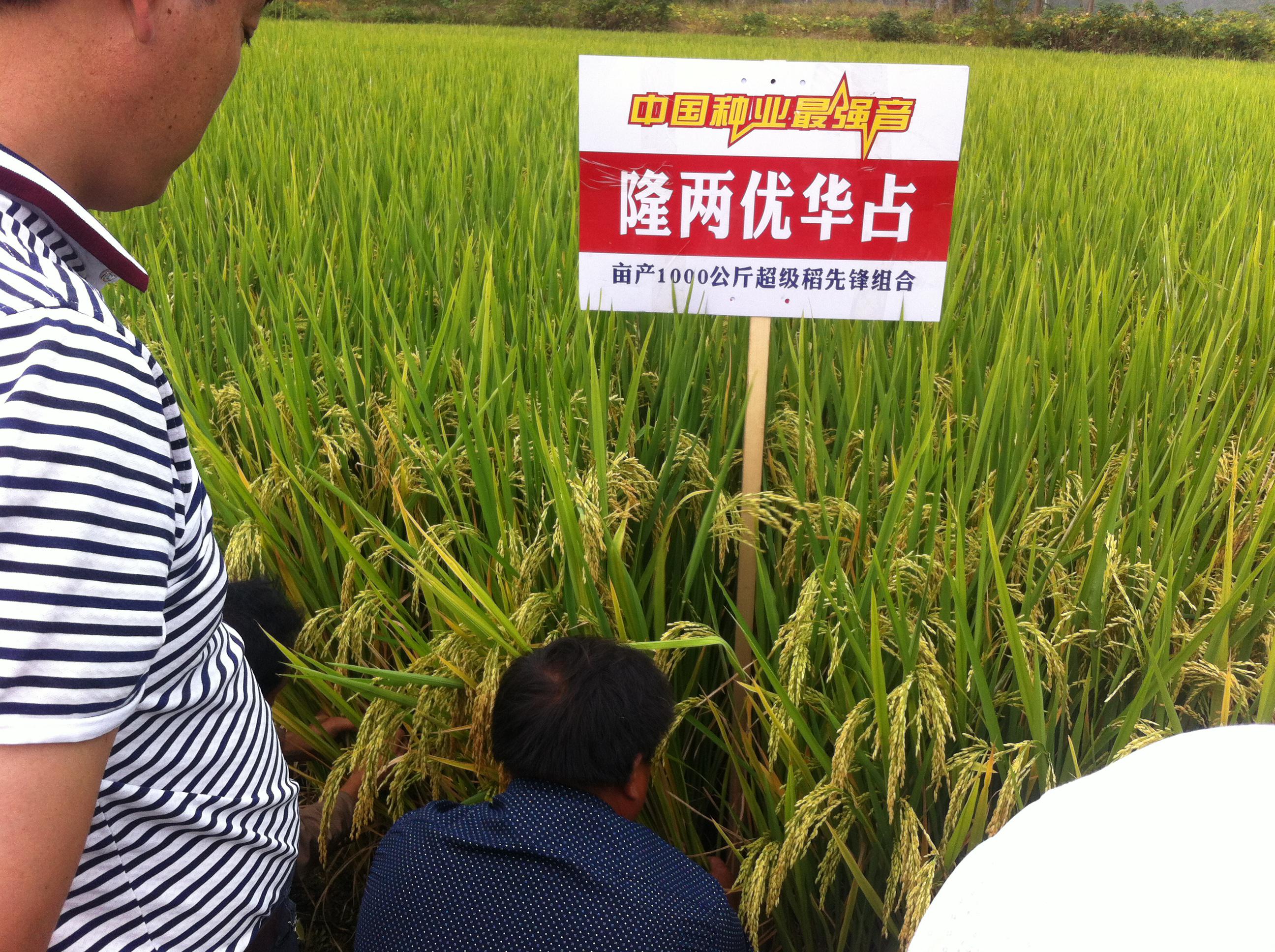 2015年9月26號,農(nóng)歷中秋佳節(jié)來臨之際,在龍蝦之鄉(xiāng)--江蘇盱眙成功召開了一場別開生面的水稻觀摩會議。由江蘇盱眙經(jīng)銷商徐福祥組織60多名來自周邊的零售商和種田大戶來到了位于馬壩鎮(zhèn)的中國龍稻——隆兩優(yōu)華占示范田塊,看著田間隆兩優(yōu)華占的長勢,參觀的隊(duì)伍不時發(fā)出陣陣感嘆“隆兩優(yōu)華占沒有一點(diǎn)稻瘟病,其它品種好嚴(yán)重的穗頸瘟”“隆兩優(yōu)華占有效穗真多,這一兜有25個”“隆兩優(yōu)華占結(jié)實(shí)率真高,最少在90%以上吧”!