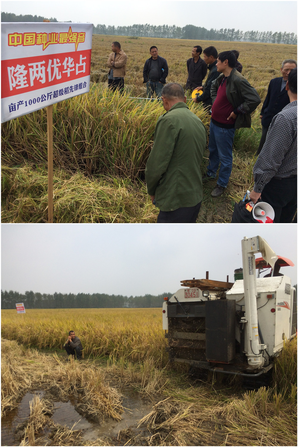 漢川代理商許合斌說:“隆兩優(yōu)華占的產(chǎn)量,要是只有2.2斤/平方,我絕對不會叫大家來看!收割機(jī)來了,我們收了看!”
