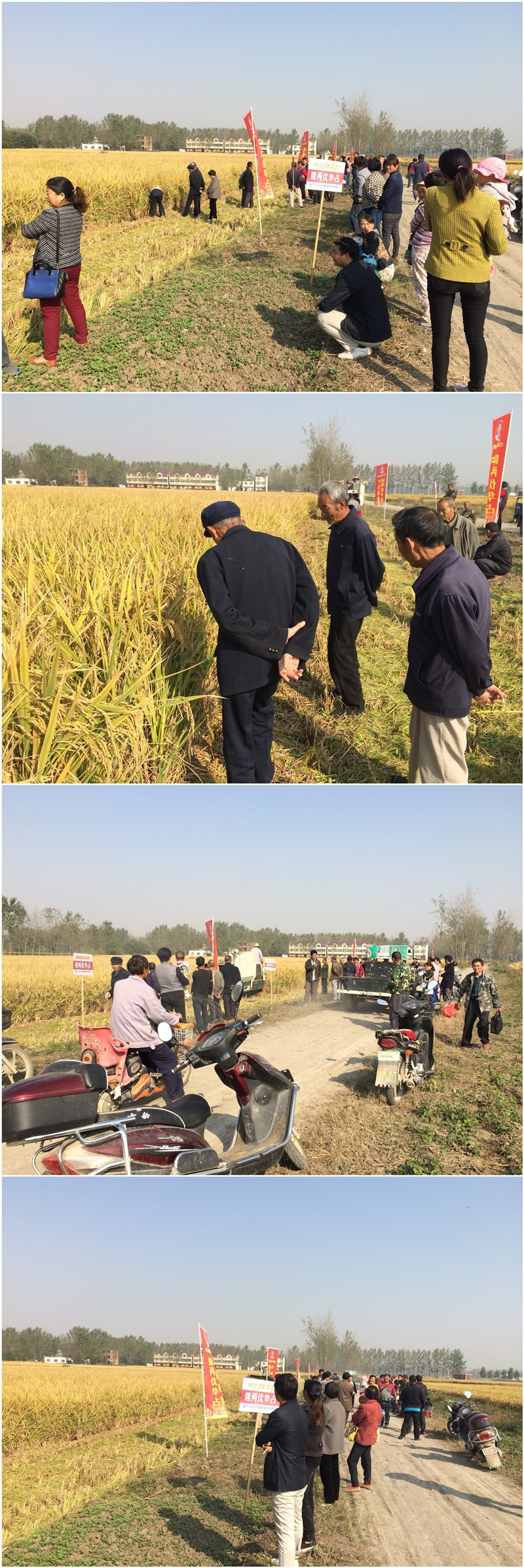 金秋十月,處處稻花香。2015年10月13日安徽潁上縣代理商田立山組織江店、潤河、八里河等鄉(xiāng)鎮(zhèn)的70多位零售商和種植戶在江店鎮(zhèn)關(guān)路陳村召開了隆兩優(yōu)華占現(xiàn)場測產(chǎn)會(huì)。