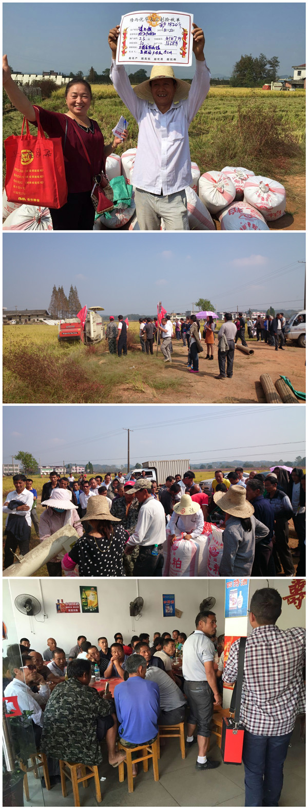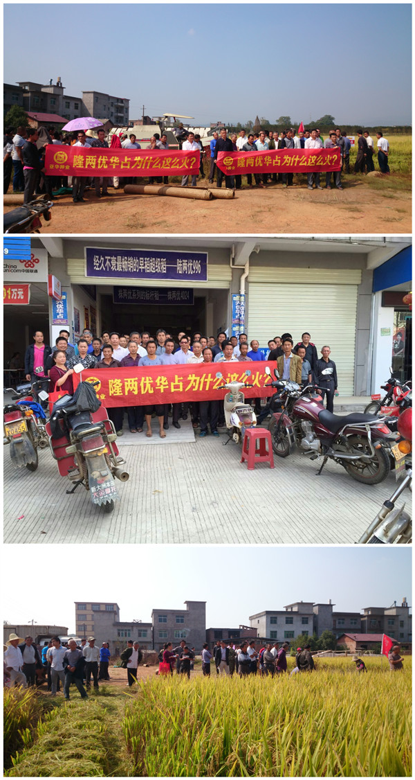 2015年10月22日,在江西萬載縣代理商的組織下,80余名零售商和種田大戶齊聚羅城鎮(zhèn)幾百畝連片種植的隆兩優(yōu)華占觀摩田里,一同見證隆兩優(yōu)華占豐收的盛景。