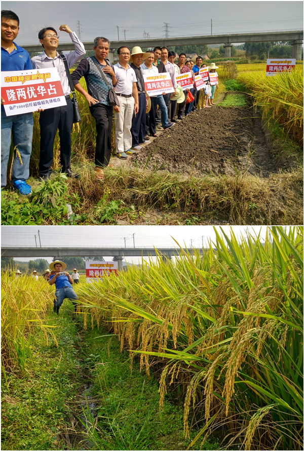 今天觀摩的田塊其中一塊是去年的高產(chǎn)攻關(guān)田,不同的是去年是專業(yè)技術(shù)人員種的,今年是農(nóng)戶自發(fā)種的;去年只有高產(chǎn)攻關(guān)兩塊田,今年是整個村莊一片田。隆兩優(yōu)華占通過第一年試種觀察,第二年的示范推廣,今年已在蓮塘開花結(jié)果,在觀摩的蓮塘棠下村,幾乎每家每戶都是種的隆兩優(yōu)華占。