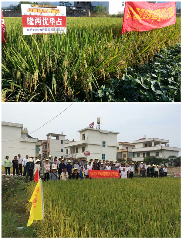 2015年10月25日,在江西于都縣潭頭鎮(zhèn)張軍村,集結了各個鄉(xiāng)鎮(zhèn)的優(yōu)秀代理商和潭頭鎮(zhèn)種田大戶七十多人觀看隆兩優(yōu)華占示范田。與會人員聽公司人員講解品種特性后,紛紛深入田間了解品種特性,明白講解內容確實所言不虛,大家紛紛對隆兩優(yōu)華占豎起大拇指。很多賣了隆兩優(yōu)華占的零售商和大家交流自己鄉(xiāng)鎮(zhèn)的種植情況,確實品種“高人一等”,表現突出。公司人員和大家宣講預定政策后,大家積極響應,當場預定數量超過2000斤。