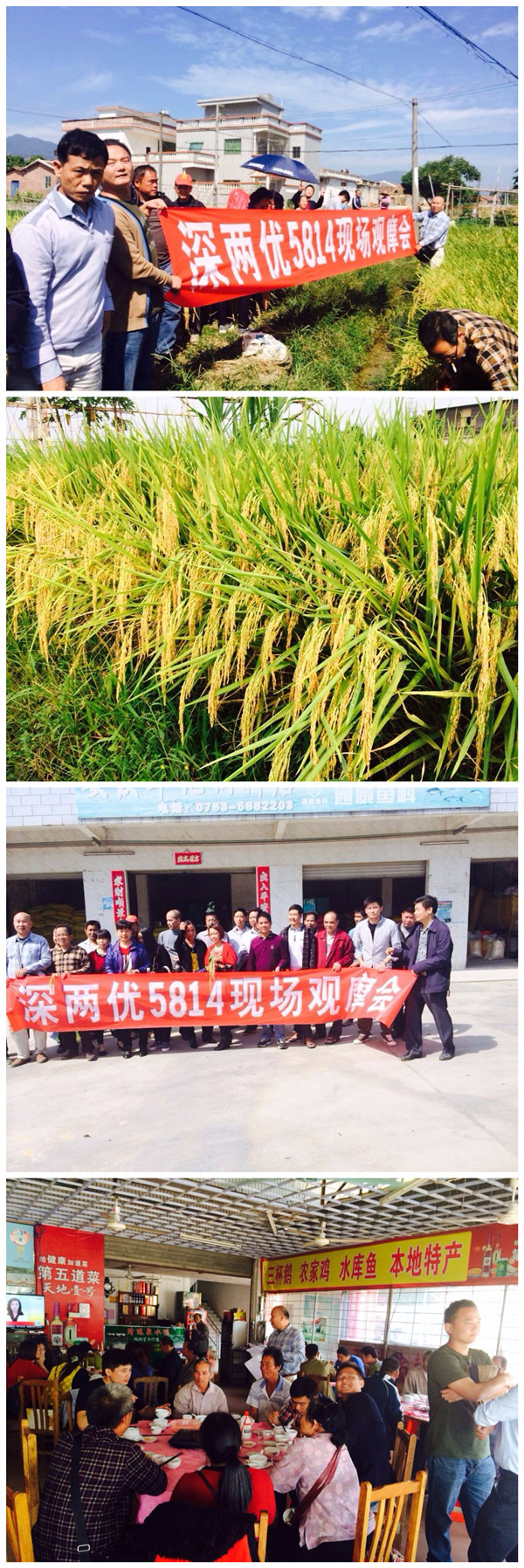 2015年11月2日,在廣東省清遠(yuǎn)市清新區(qū)三坑鎮(zhèn)安慶村,召開了最美超級(jí)稻-深兩優(yōu)5814現(xiàn)場(chǎng)觀摩會(huì),參會(huì)零售商及大戶共計(jì)38人,會(huì)議是應(yīng)廣大零售商和大戶要求召開的。